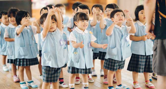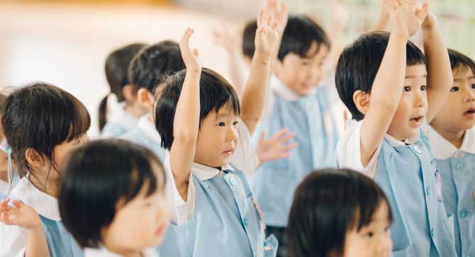 集団生活を通して社会性を身につけ、基本的な躾と道徳性の芽生えを育てる。