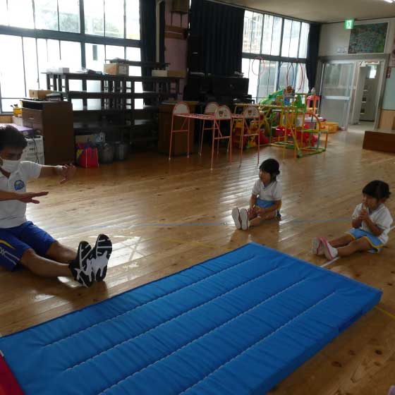 マット、跳び箱、鉄棒の器具運動を中心に、ボール・縄跳び・ゲーム・すもうなど、さまざまな運動が体験できます。無理のない運動経験により情緒が豊かに育ちます。 -